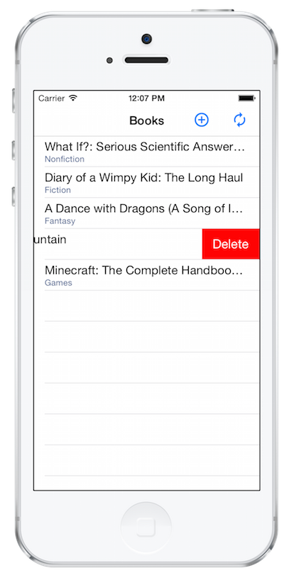 - Run the application to test the delete logic - you can get to the functionality by swiping to the left on iOS, or by performing a long-click on Android and Windows (press + hold).